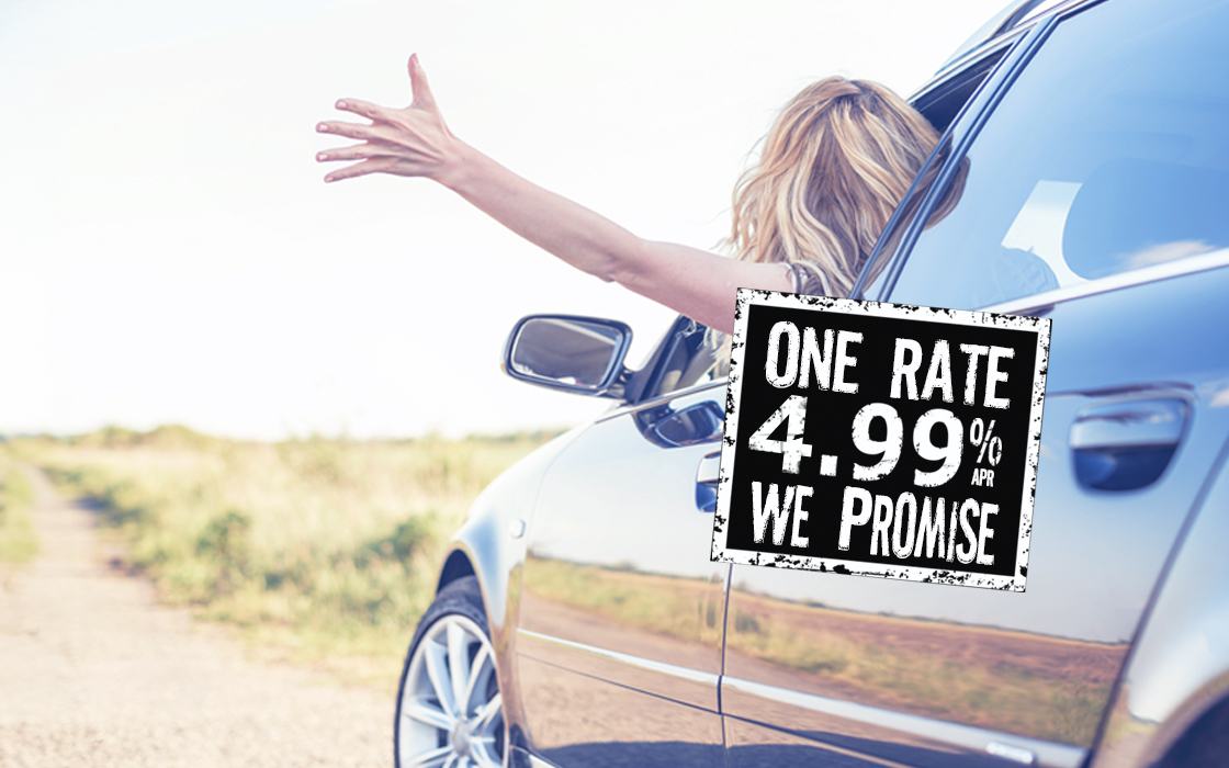 Whether you’re buying new, used, or refinancing, we offer one low rate to fit your budget. Only 4.99%.